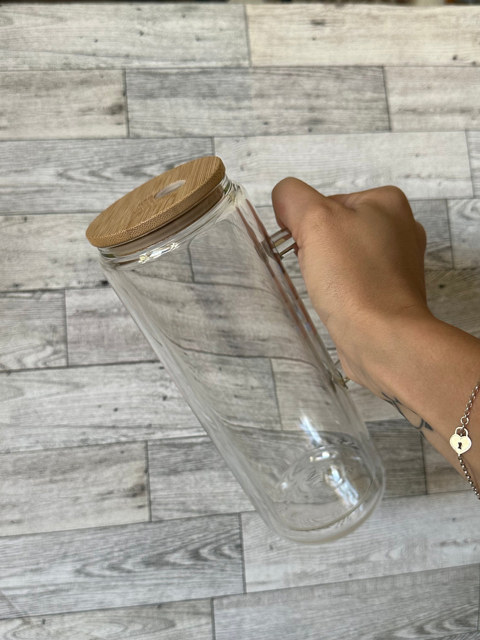 This hand made glass can style cup is the perfect way to enjoy your favorite beverage. Crafted with a permanent UV DTF design , you'll have a modern and stylish companion for your coffee, tea, or cold drinks.