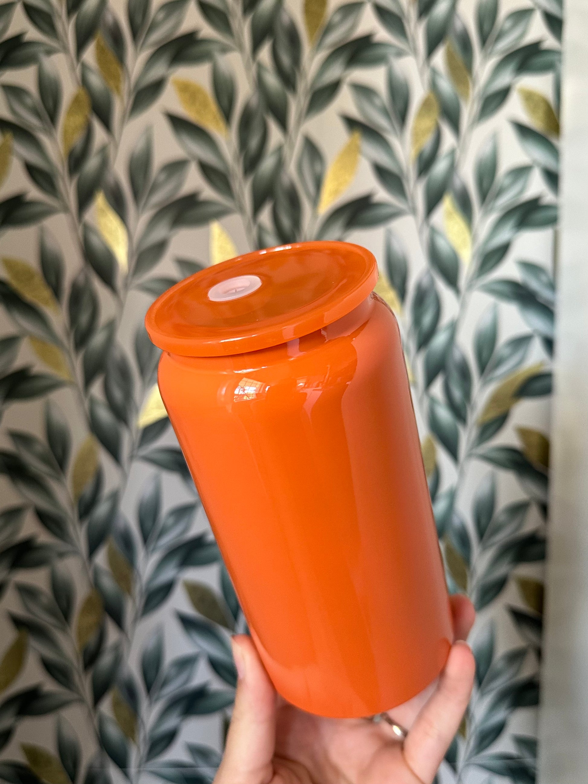 This hand made glass can style cup is the perfect way to enjoy your favorite beverage. Crafted with a permanent UV DTF design , you'll have a modern and stylish companion for your coffee, tea, or cold drinks.
